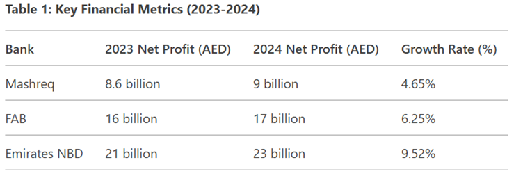The banking sector in the United Arab Emirates (UAE) has shown resilience and adaptability in the face of global economic fluctuations, leveraging digital transformation, robust regulatory frameworks, and diversified revenue streams. This analysis critically examines the financial performance of Mashreq Bank, First Abu Dhabi Bank (FAB), and Emirates NBD based on their net profit figures from 2023 and 2024, highlighting key growth drivers, challenges, and strategic approaches that have influenced their earnings.